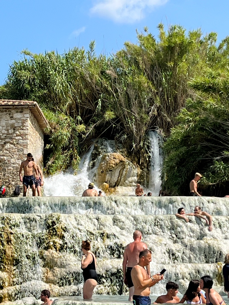 About two hours north of Rome, in the rolling countryside of southern Tuscany, the enchanting hot springs of Saturnia offer one of Italy’s most memorable natural experiences. Known for their cascading, mineral-rich waters, these thermal pools have been prized since ancient times for their restorative properties. The most iconic section, a series of tiered limestone basins formed by centuries of flowing water, creates a striking, almost otherworldly landscape.