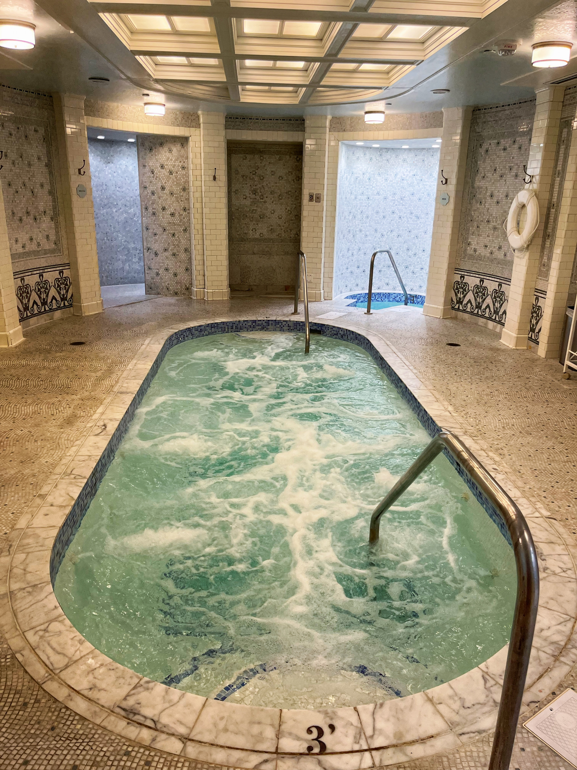 The process begins by exfoliating in the mineral deluge shower with alternating hot and cold sprays of water; then head into the steam room. I always take a towel in to sit on since the double decker seating area can be a bit warm. After sweating it out with a eucalyptus steam, take another deluge rinse without exfoliating. The list hanging in the spa suggests times for each part of the ritual, but I like to alternate between hot and cold baths a few times. The hot mineral bubble pool is a very warm hot tub while the cool mineral pool soak can only accommodate one person at a time, so it feels like hanging out in a wine chiller. At the end, hydrate with refreshing cucumber aroma mist and cold cucumber water. This is when the lounge is calling.