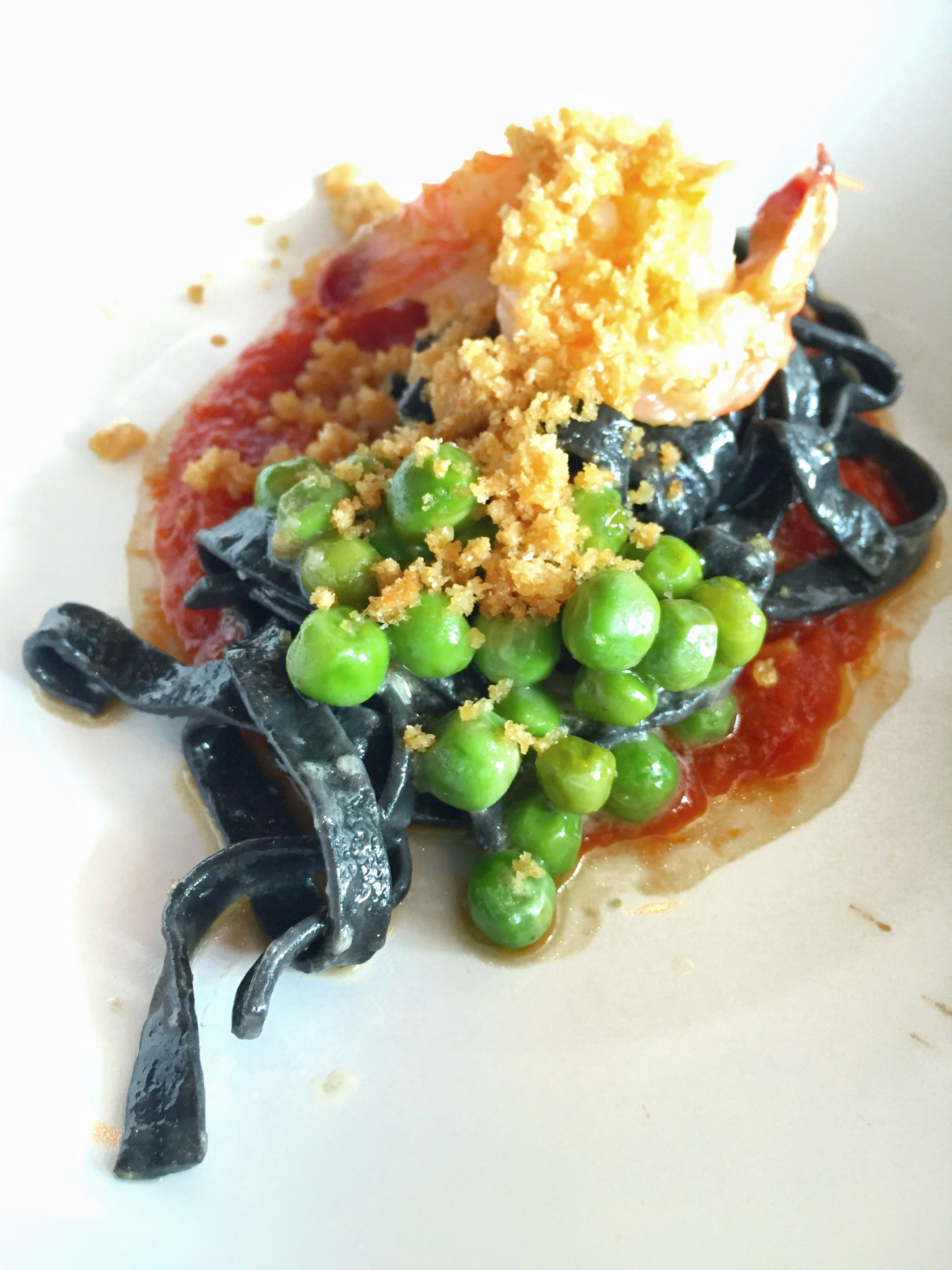 Aubergine Bistro Phillipines-born, Chef Rafael Vencio brings a global flair to the Galley with his Cajun-Creole-California Baja flavors while incorporating ideas from his home land. The shrimp and squid ink pasta was loosely inspired by a childhood Phillipino dish. I would have been happy just stopping at the sauteed gulf shrimp, english peas, anchoiade, capers, pork rinds, in tomato sauce. Such artful plating.