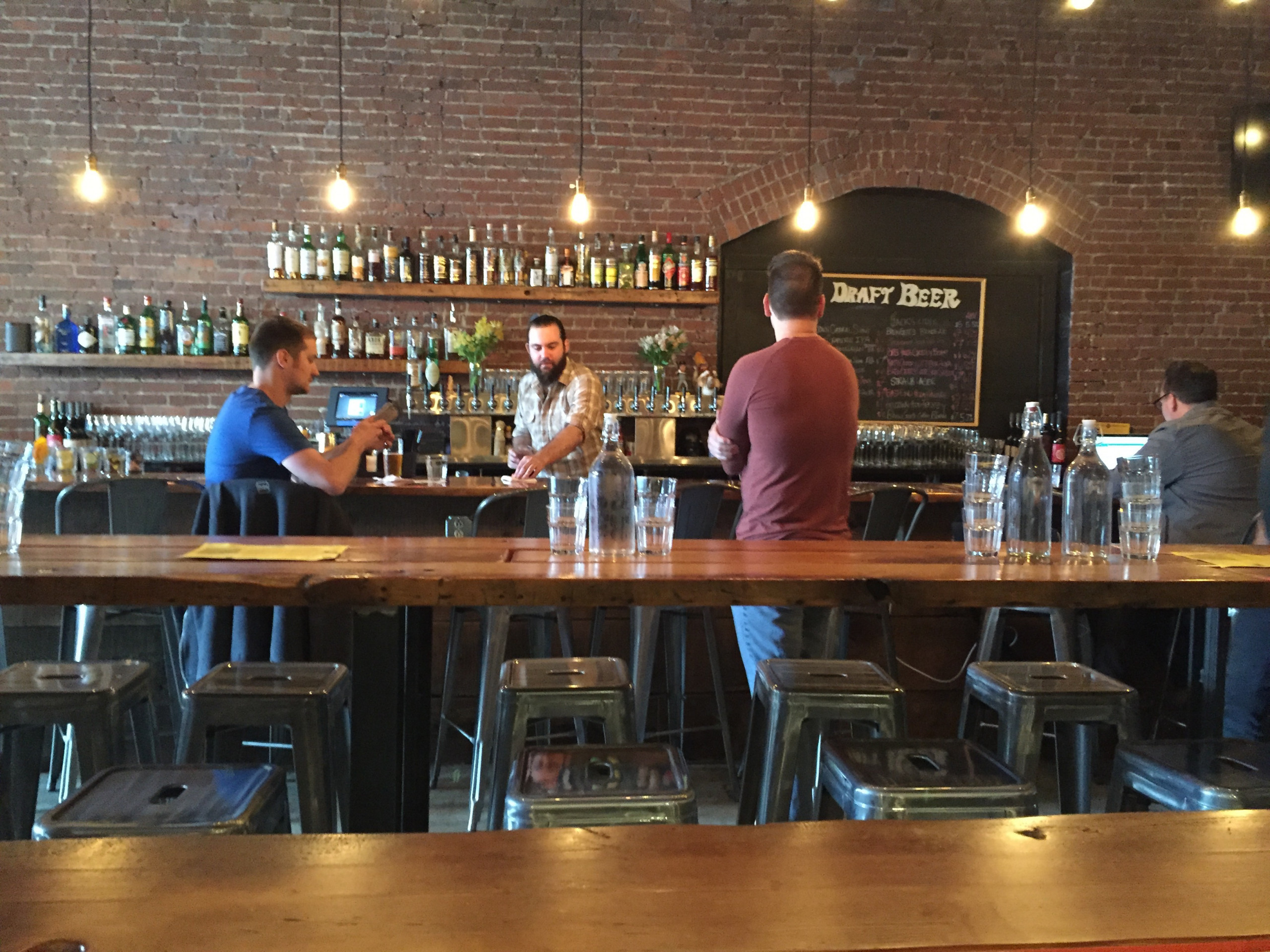 An adjacent Smallman Galley Bar was designed as a stand alone watering hole, but the drinks certainly supplement and pair well with the neighboring culinary efforts. Our group sampled several signature cocktails, which were mostly named after the Pittsburgh Pirates baseball scene. The drink menu also carried lots of regional craft beers and local spirits. The combination of gin, green chartreuse, lime, mint, and egg white captured my attention, so I ordered the “Dock LSD” cocktail. It came out looking totlly different than expected. It was a pretty drink that had a nice flavor – and kick.