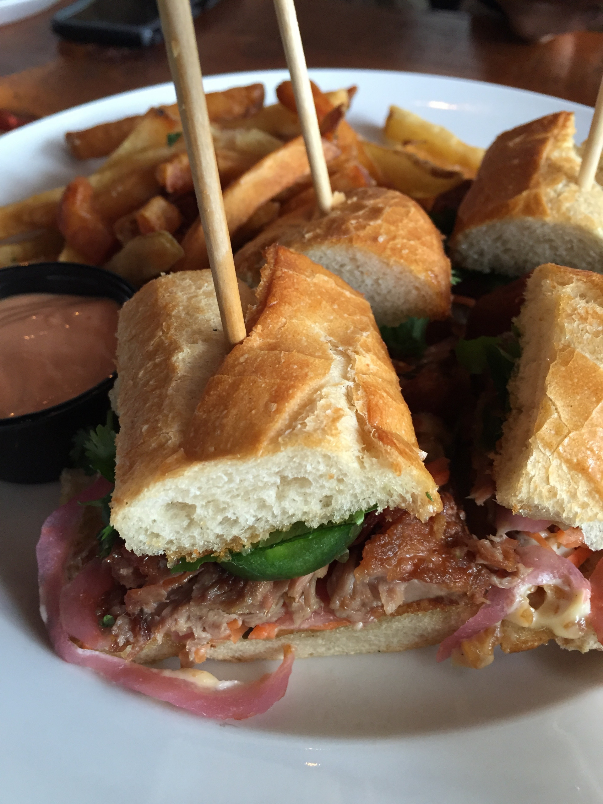 Provision Pgh Banh Mi. That. Is. All. Actually, Chef Stephen Eldridge’s traditional Vietnamese sandwich is crazy good! Sweet & sour pork, pickled onion & carrot, cilantro, mint and smoked peanut aioli on baguette. I can’t wait to come back and try the Sunday Drunch menu! Wait for me, “Red Feathered Stepchild” and “Smothered Fries”!