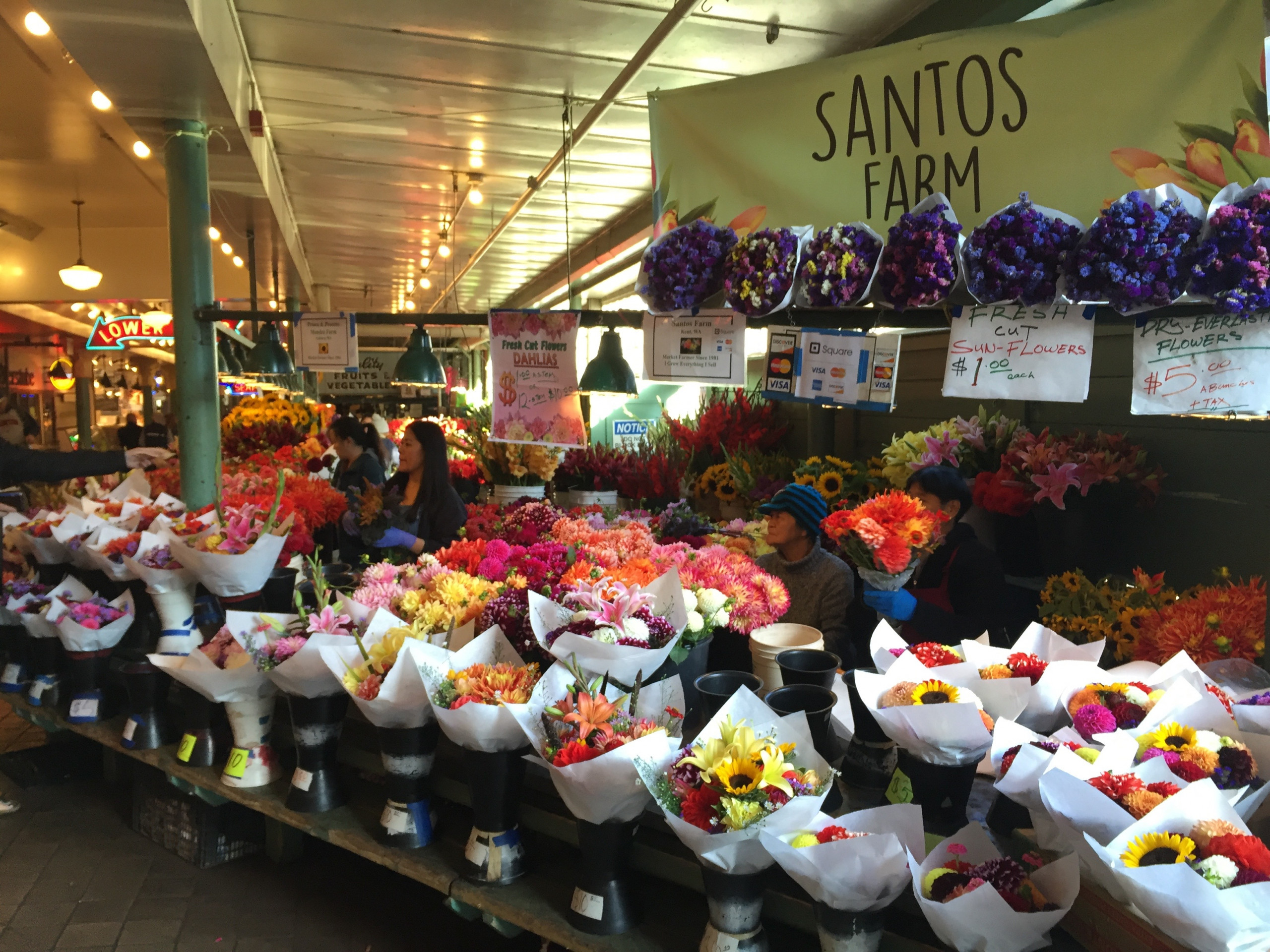 Pike Place Market opened in 1907 and remains one of the oldest continuously operated public markets in the country. The multi-level building hugs a steep hill overlooking the magnificent Puget Sound. The year-round market is a foodie’s and photographer’s delight as stalls burst with flowers, fish, vegetables, local crafts, and specialty foods. Linger around Pike Place Fish long enough and you will be treated to a show of fishmongers athletically tossing salmon (or halibut) to one another over the frosty counters. The market made me wish I had a kitchen during this visit.