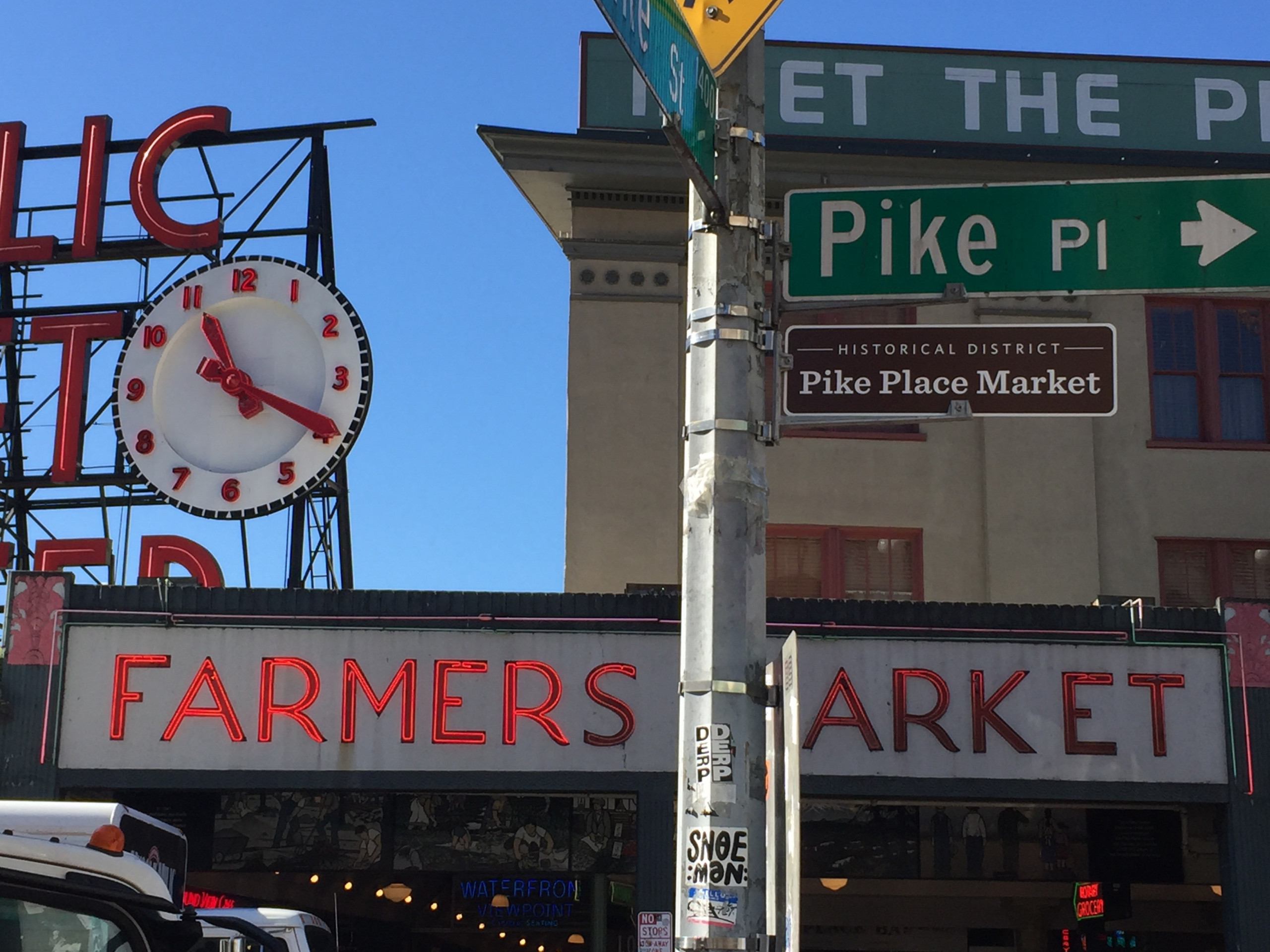 My first trip to Seattle was centered on food and of course, I had a mile-long agenda. The iconic Pike Place Market was at the top of the list, and conveniently at the bottom of the hill from our hotel. By the time we arrived, the vendors had packed it in for the day, but a quiet stroll through the empty, block-long building allowed for interesting photo-ops without throngs of people.