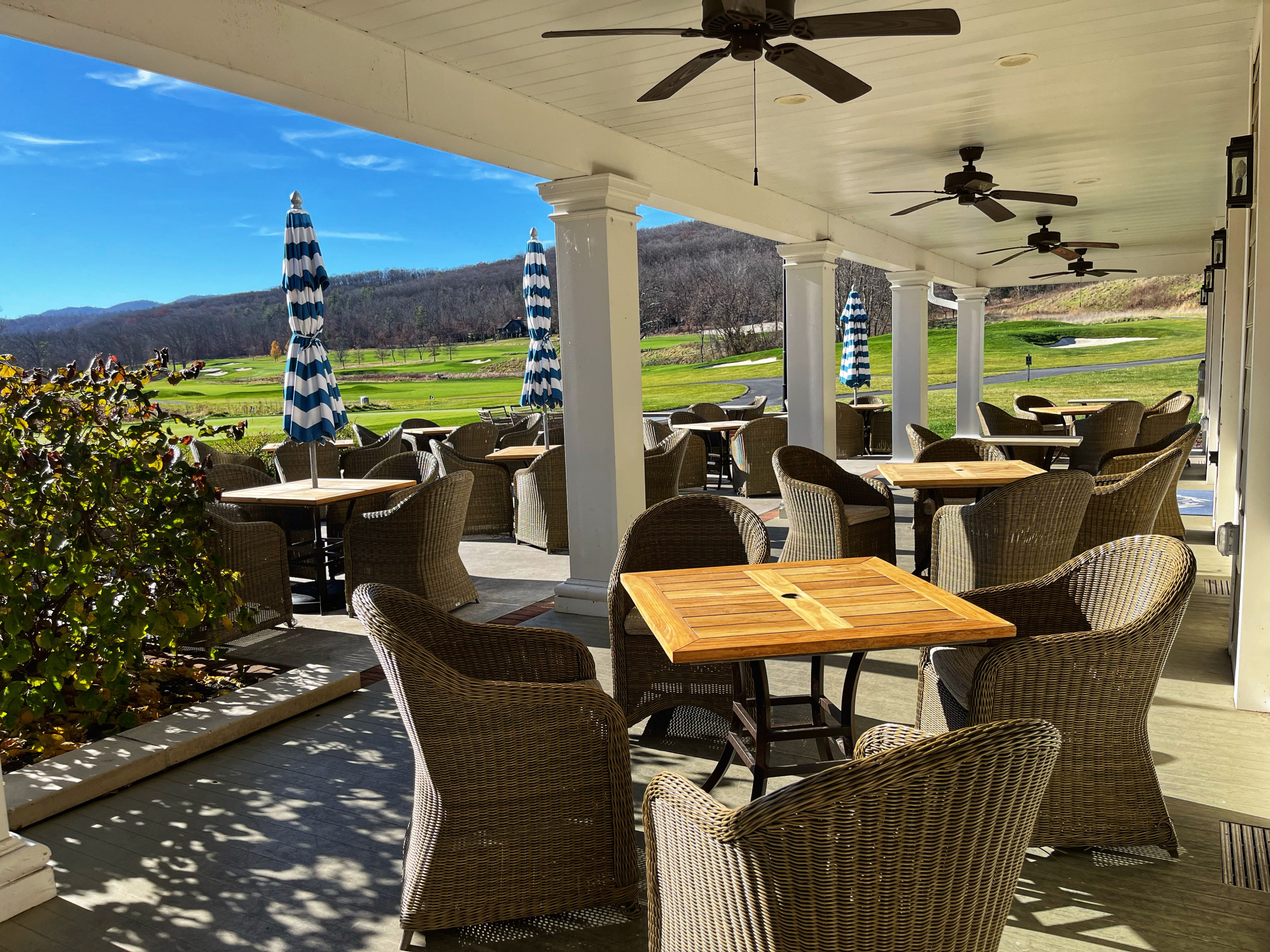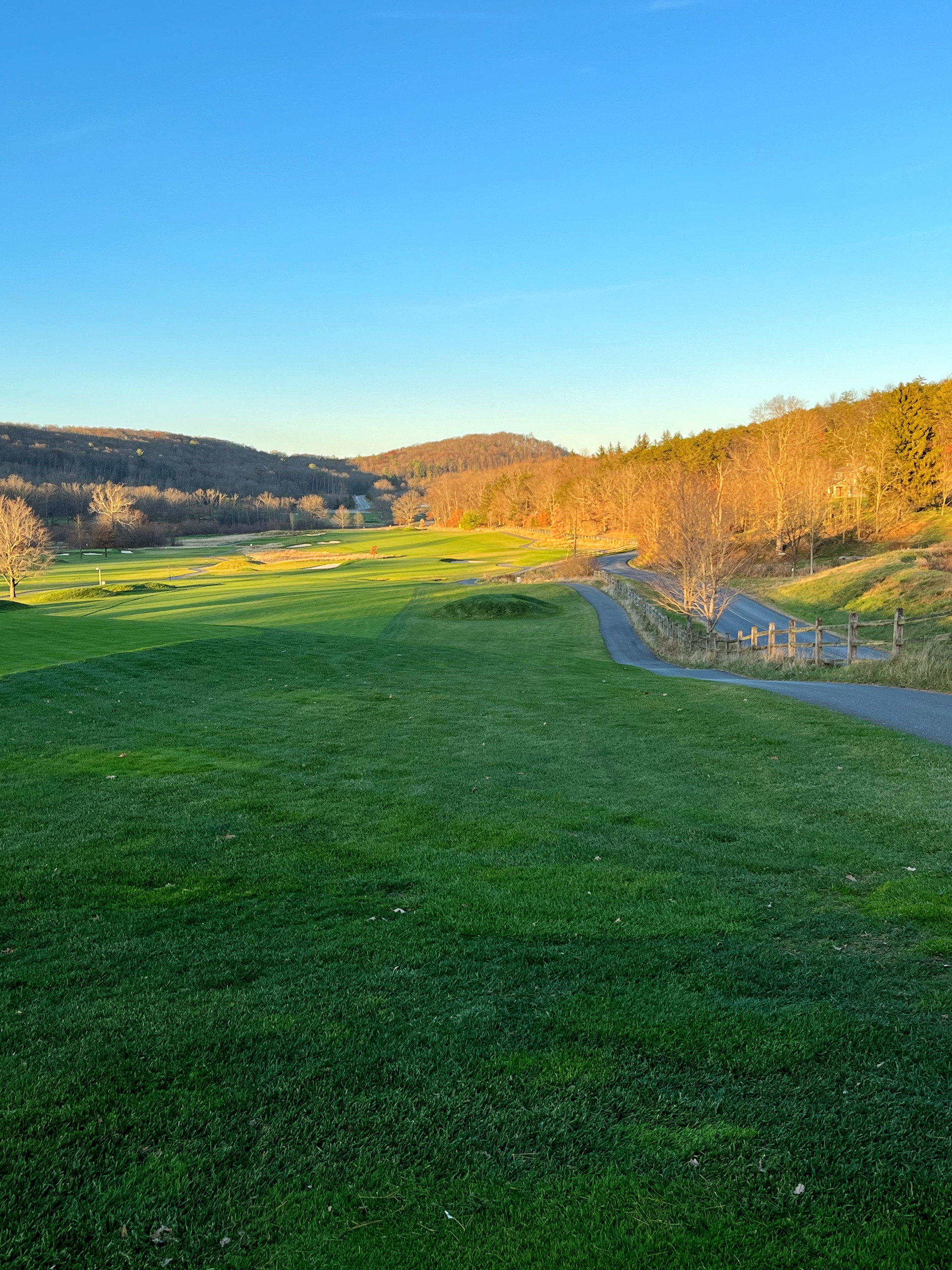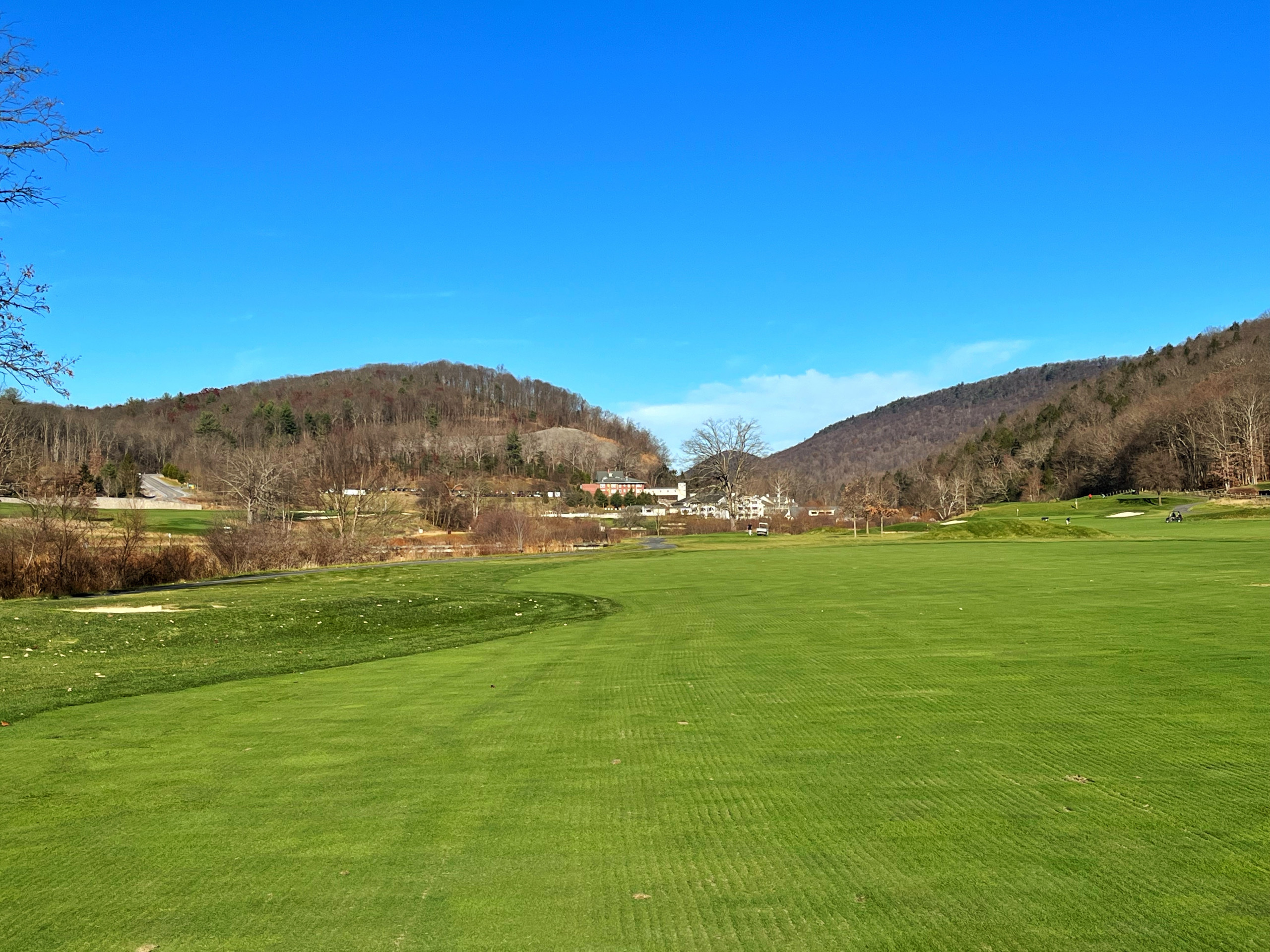 We decided to golf 18 on the Old Course, which dates back to 1895 and was most recently restored to its original course layout. Surrounded by breathtaking views of the Allegheny Mountains, the Old Course has been designed and updated by three golf architectural masters—Spencer Oldham, A.W. Tillinghast and Donald Ross. I appreciate the course for its historical significance and was able to run the cart paths the last time we were here when it was seasonally closed. The fairways are beautifully manicured, but one quickly understands the length of the course and the challenging approaches to the greens.