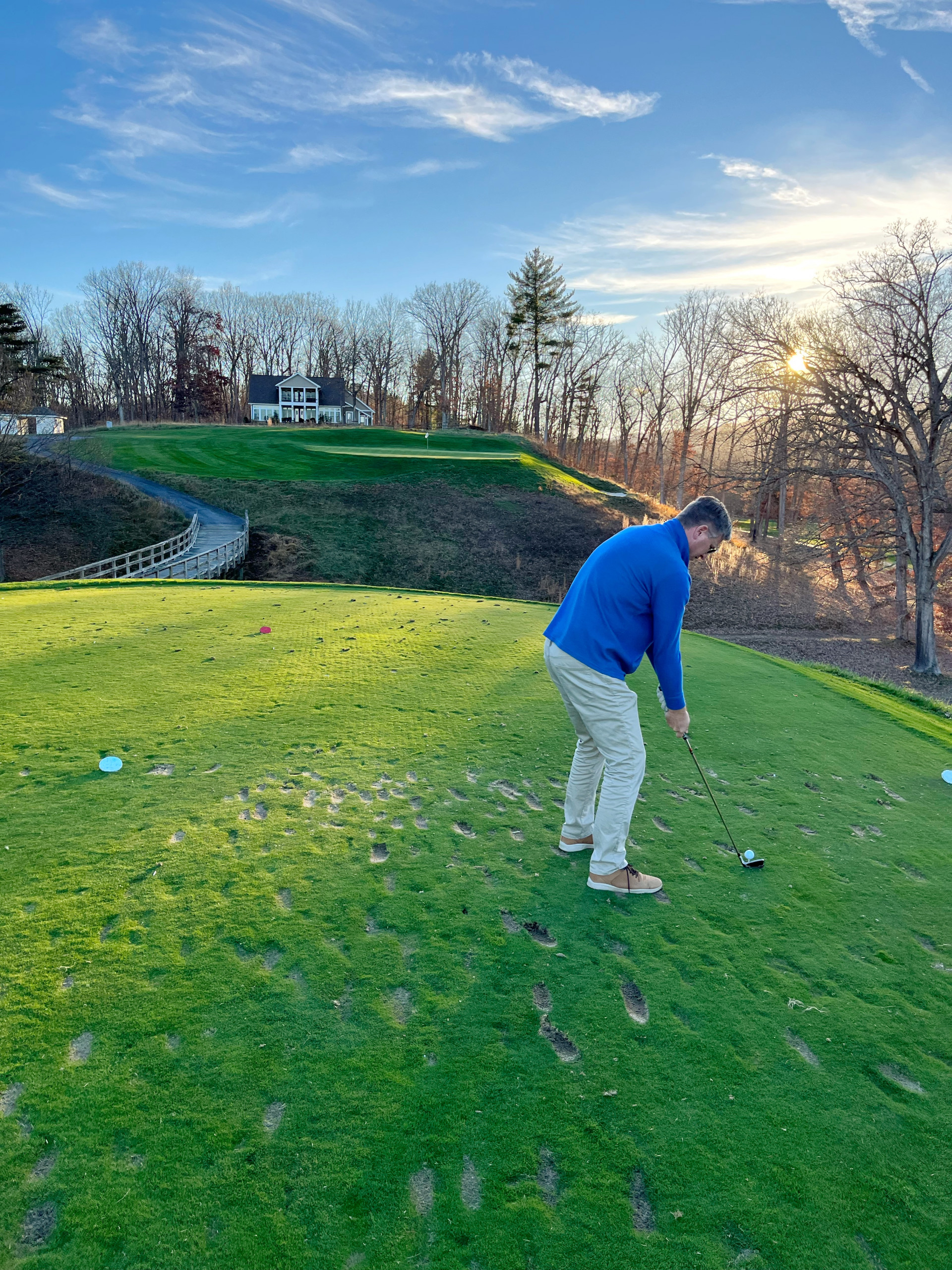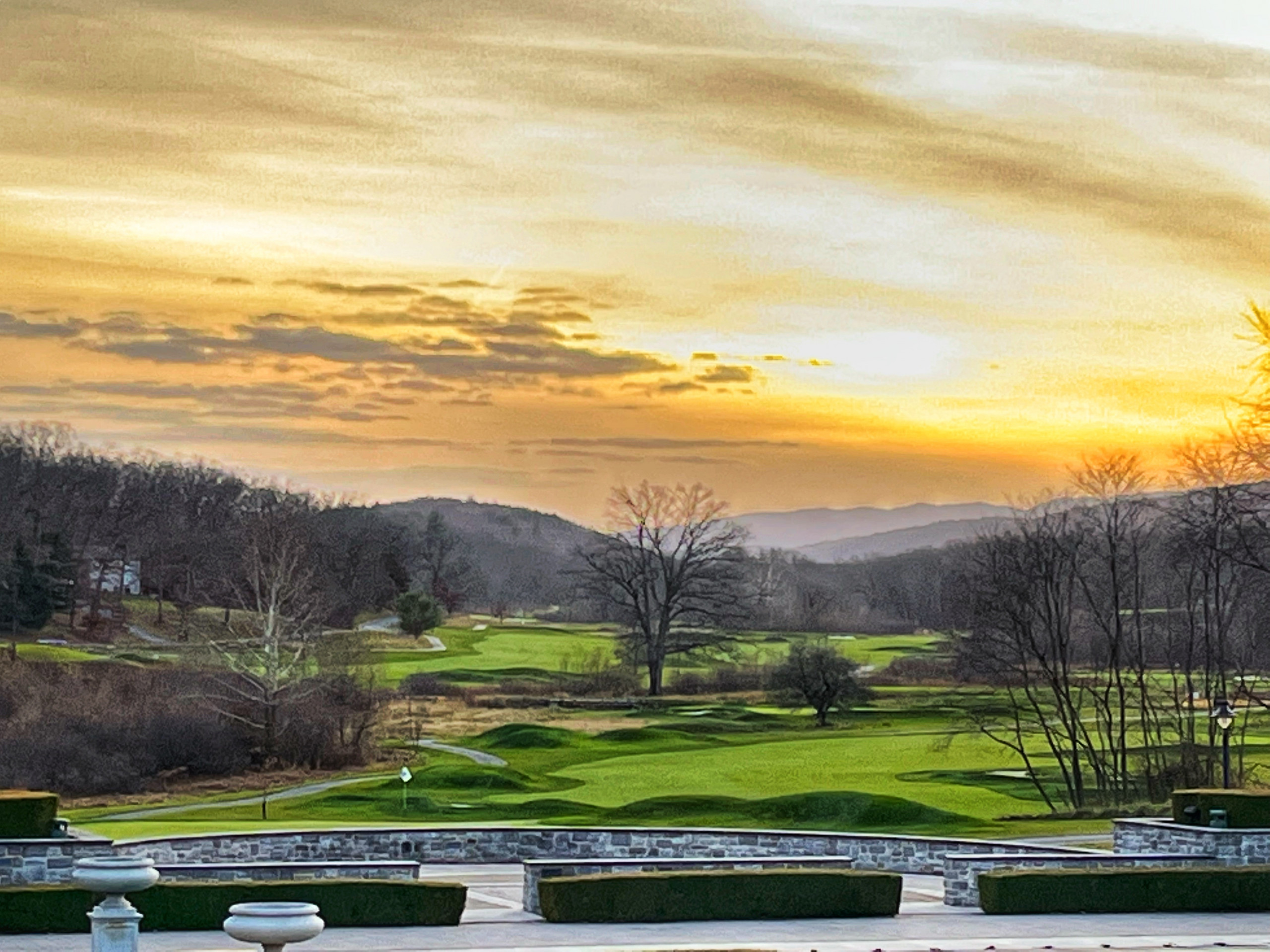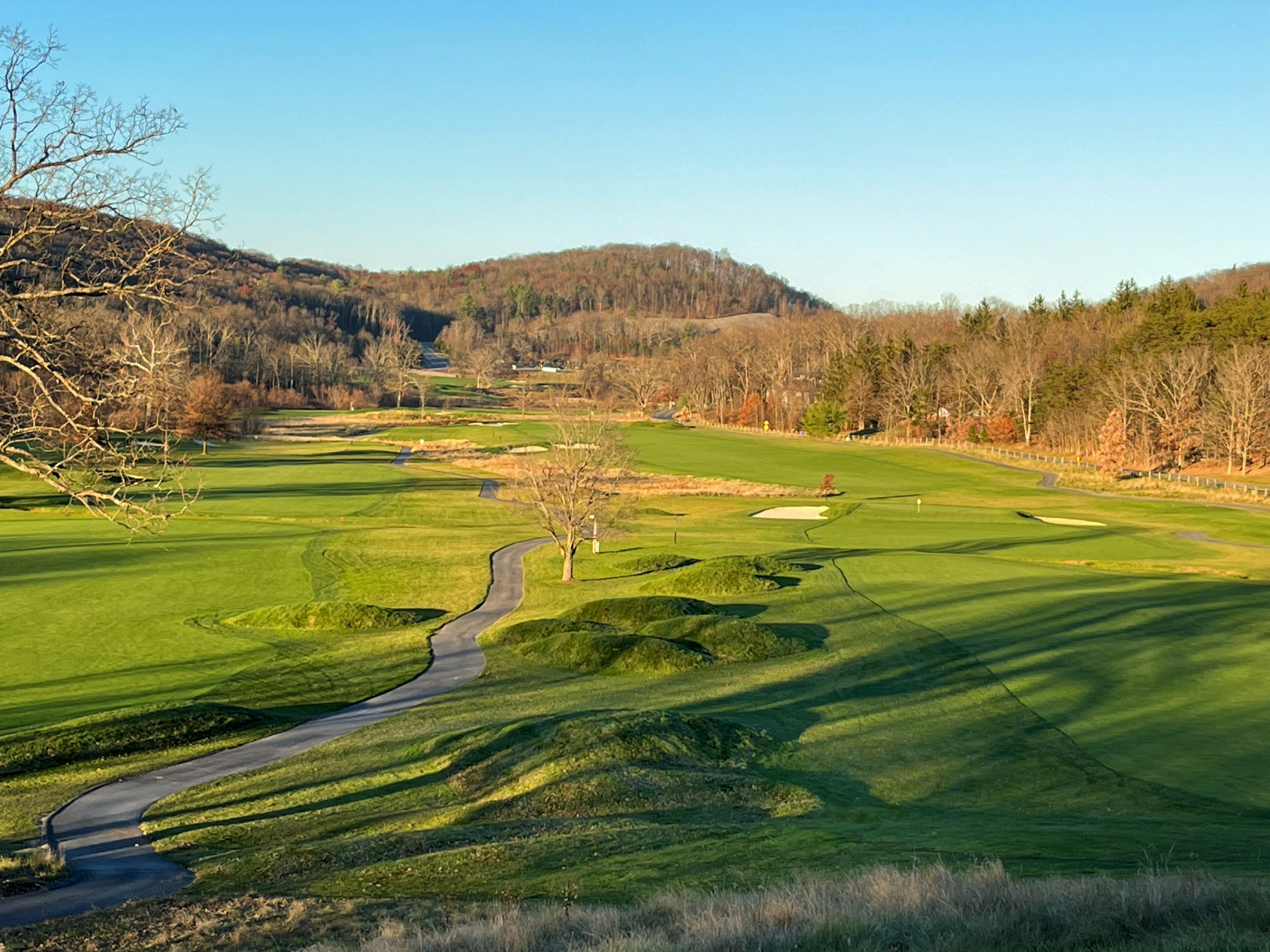 We decided to golf 18 on the Old Course, which dates back to 1895 and was most recently restored to its original course layout. Surrounded by breathtaking views of the Allegheny Mountains, the Old Course has been designed and updated by three golf architectural masters—Spencer Oldham, A.W. Tillinghast and Donald Ross. I appreciate the course for its historical significance and was able to run the cart paths the last time we were here when it was seasonally closed. The fairways are beautifully manicured, but one quickly understands the length of the course and the challenging approaches to the greens.
