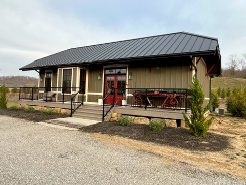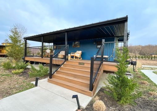 For those craving even more space with a touch of history, don’t miss the c. 1890 Depot. This modern “BnB” is filled with upcycled charm—original wood walls, floors, ticket booths, benches, and sliding doors, all lovingly preserved to give you a taste of the past while enjoying the comforts of today. It’s an incredibly cool, one-of-a-kind experience. Guests may also enjoy the community space, with its fireplace and deck loungers connected to the events center, which is available for rent. We did not stay in the Caboose as it didn’t quite provide enough space for our family, but they look like a fun experience and we’ll definitely be back!