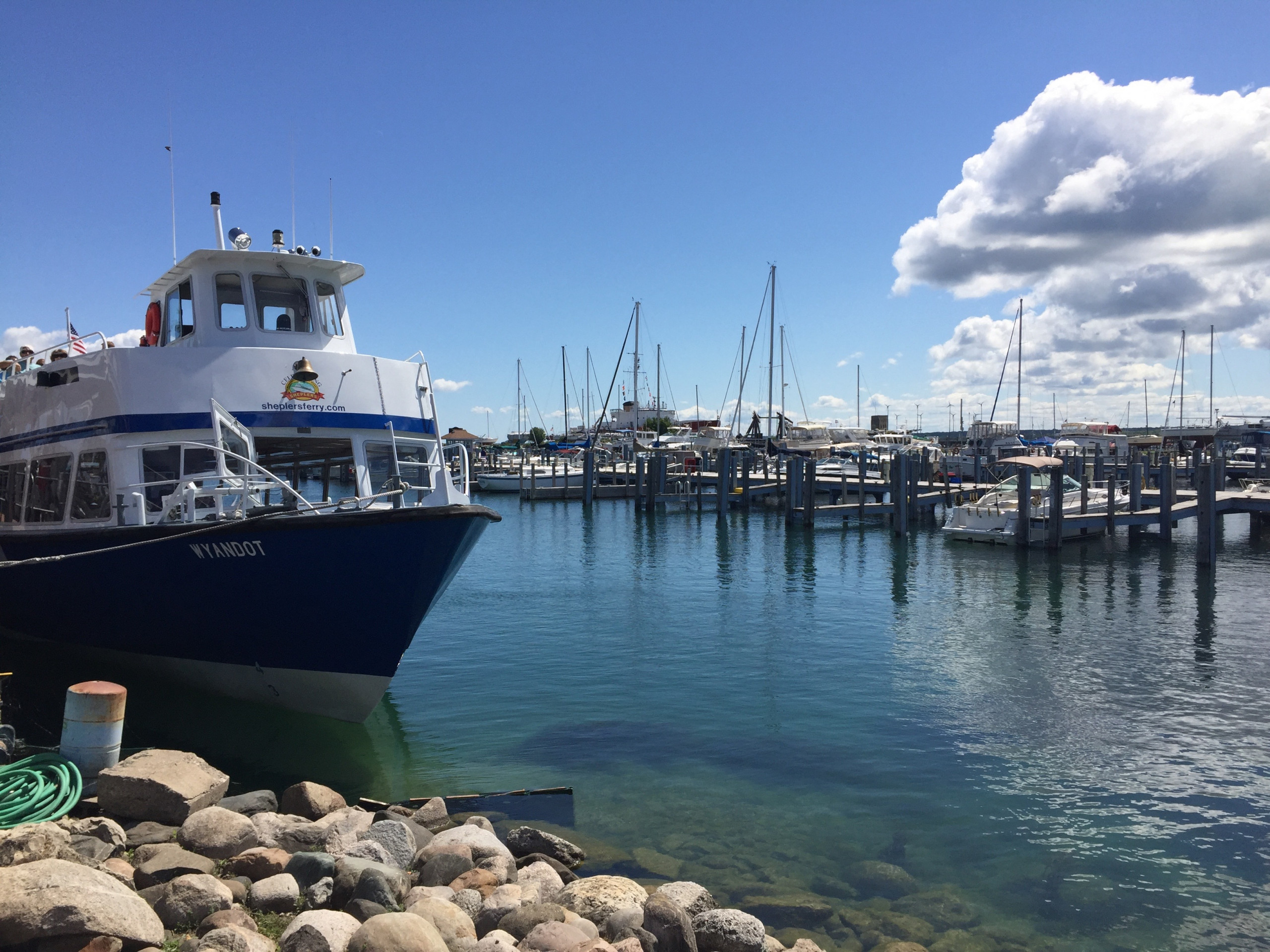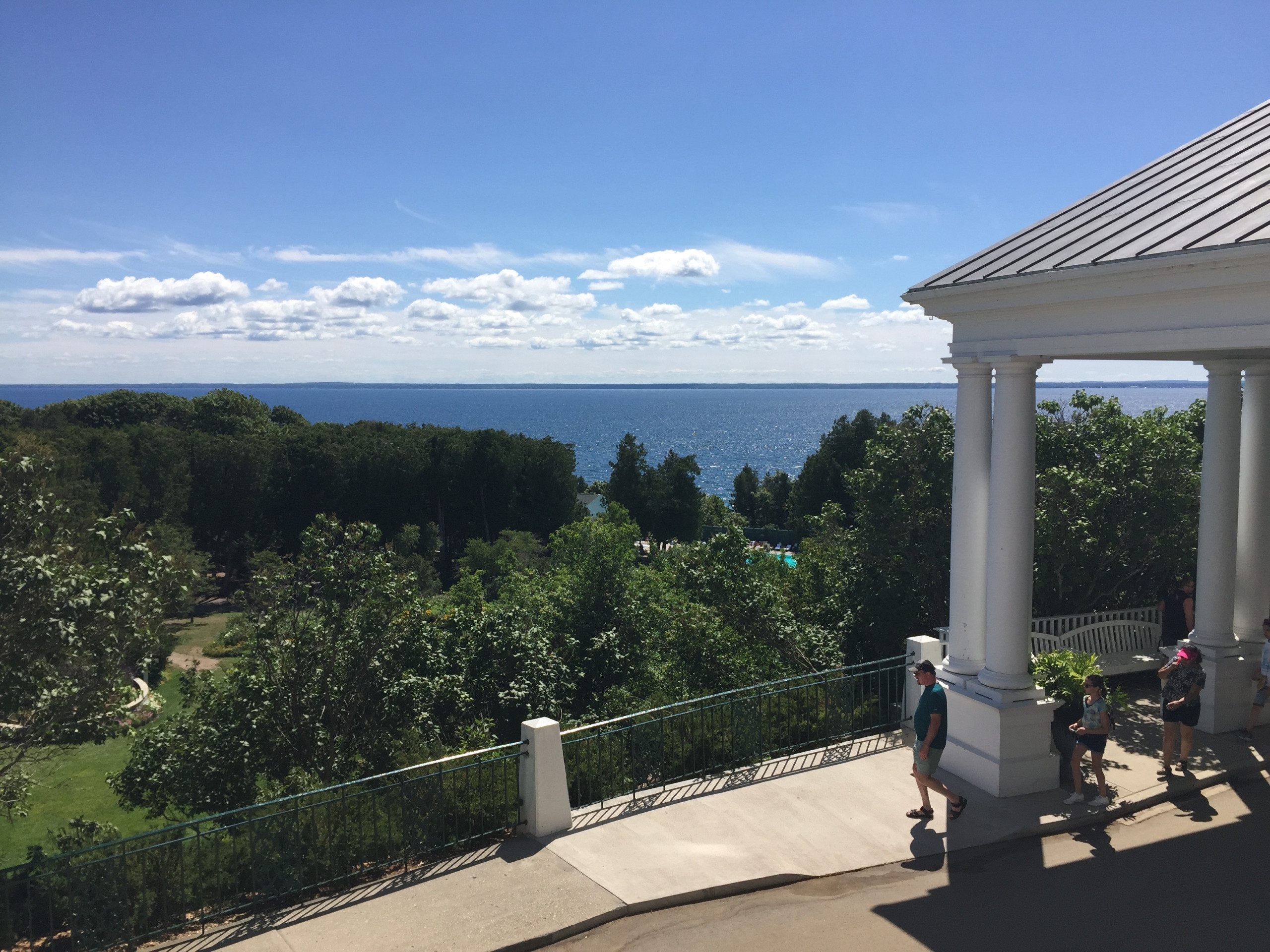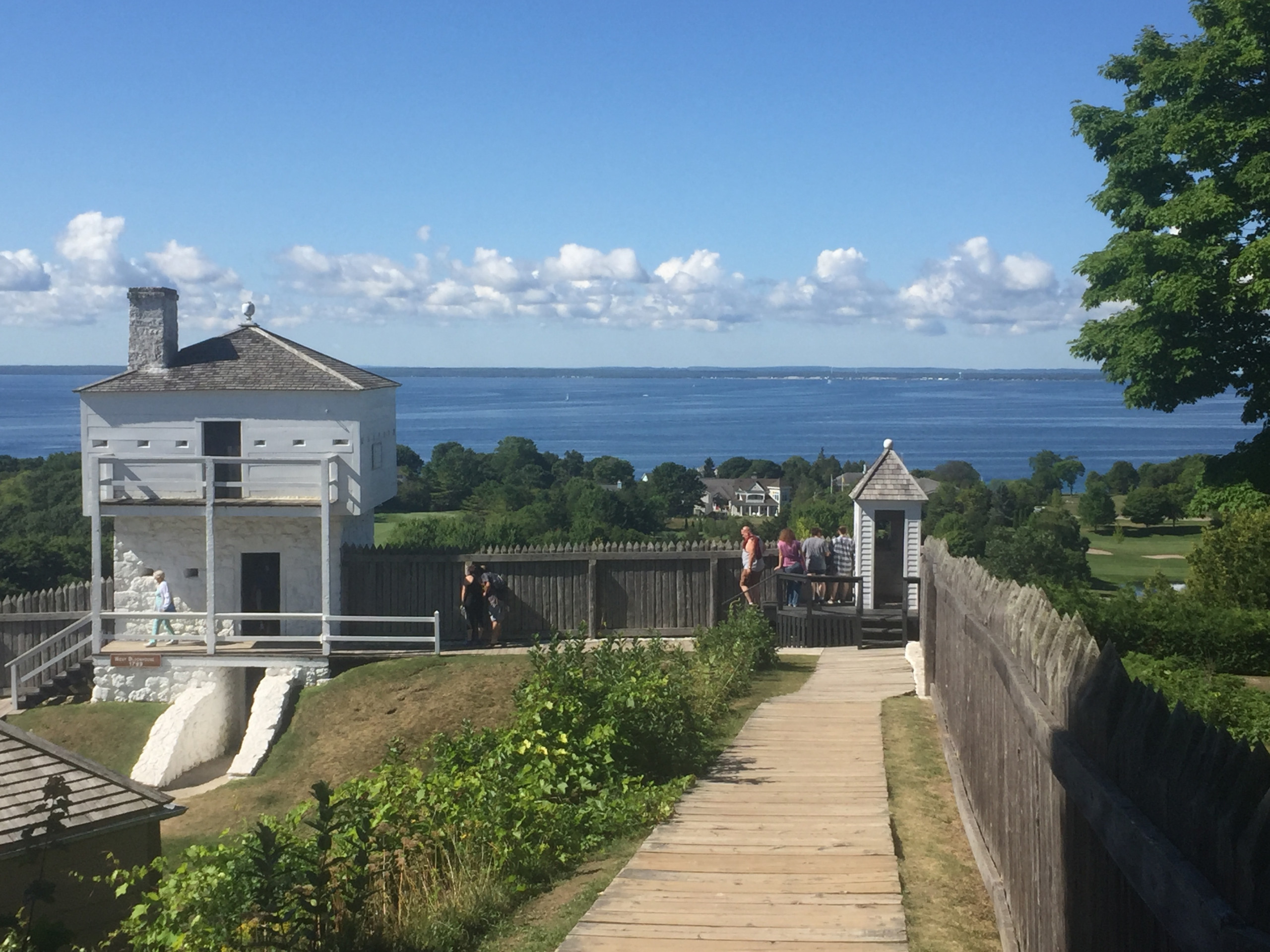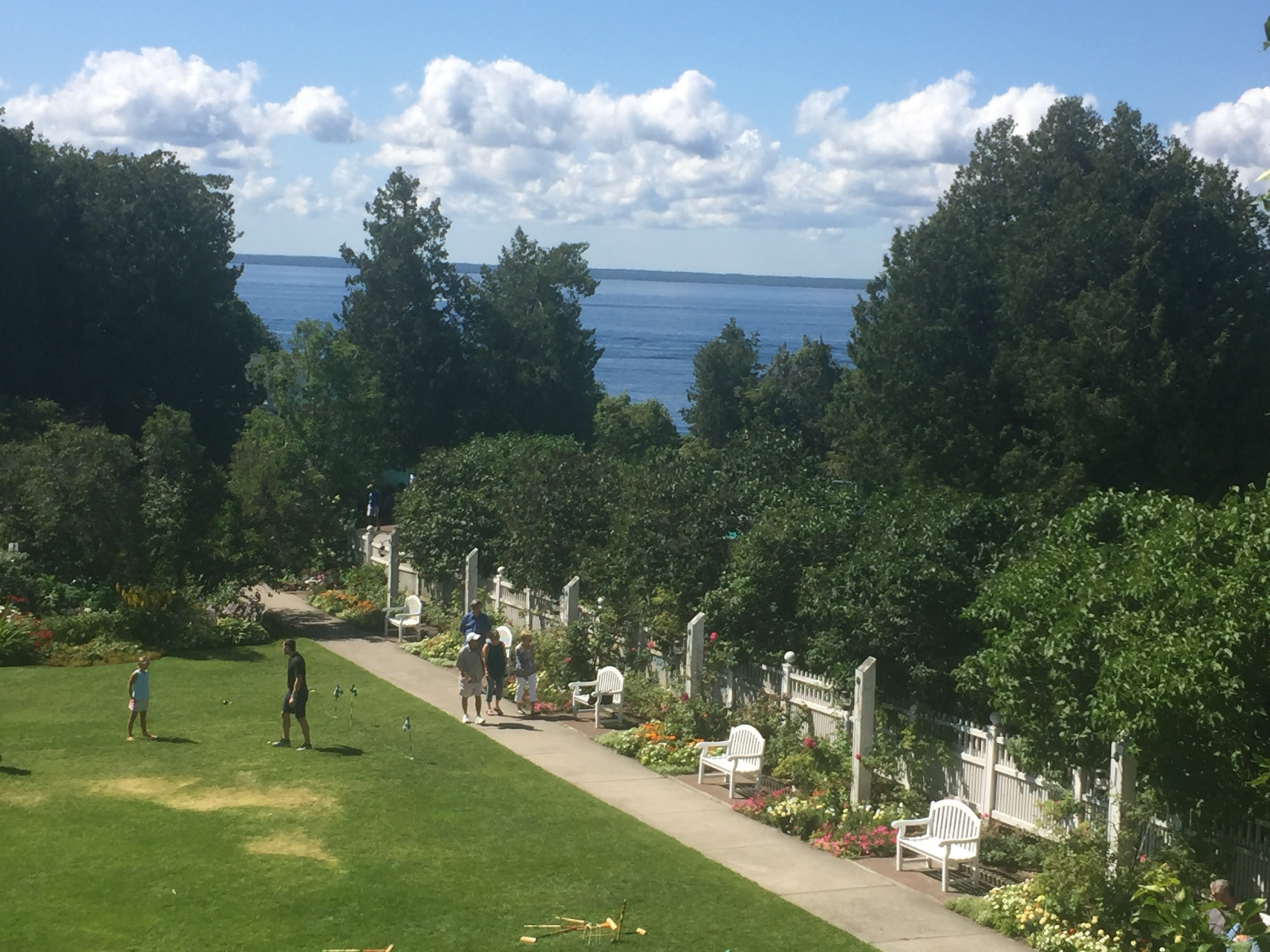 Since no power vehicles are permitted on the island, top hat-clad carriage drivers have been delivering guests to the Historic Hotel since 1887. During a later Mackinac Island Carriage Tour of the island, we learned from our chatty driver Aaron that 500-600 horses serve as a 24-hour taxi service during peak season. He toured us around, discussing the local church, graveyard, residential population, and architecture before depositing us at Fort Mackinac. We toured the 1782 fortress which once protected our northern boundaries during the War of 1812, then popped into the Grand Hotel Stables, which houses a lovely (free) museum of antique carriages. The lulling sound of clip-clopping hooves (and the occasional whiff of horse manure in the unexpectedly breeze-free heat) are sensory memories that makes this place so special and left me with one of many forever impressions.