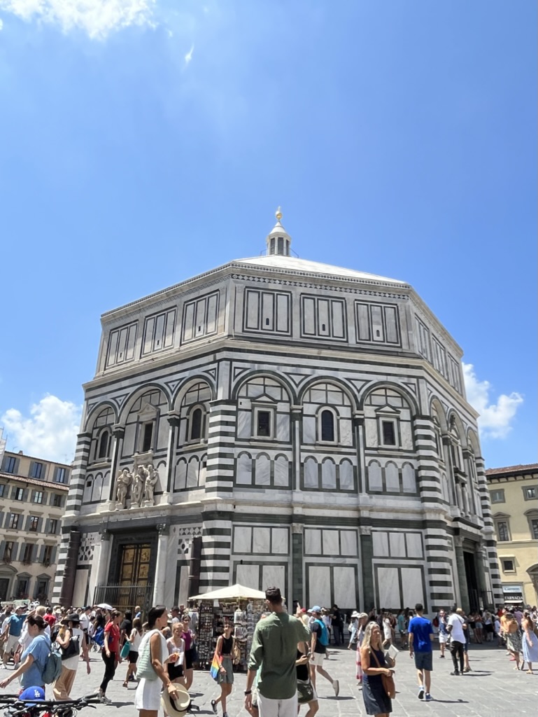 Facing the cathedral, the Baptistry of San Giovanni is among Florence’s oldest and most revered buildings. Dating to 1059, it is a masterpiece of Romanesque design. Inside, shimmering mosaics by artists including Cimabue, Meliore, and Coppo di Marcovaldo cover the ceiling in one of medieval Italy’s most significant decorative cycles.