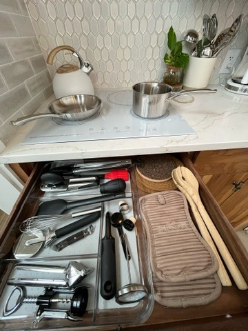 We like to cook when we travel, so I tend to pack half the kitchen for our road trips. But at Hideaway on the Hocking, we didn’t need to worry about that! This place is a chef’s dream. They’ve thought of everything—from top-of-the-line cookware and bakeware to beautiful glassware and barware, including patio-friendly dishes for outdoor meals. One of the nice touches was a tray full of local products providing a taste of Athens County. It included Shag Bark chips, Integration Acres paw paw salsa, Court Street Coffee, and a selection of Herbal Sage Teas. You’ll also find a full assortment of utensils, plus a closet stocked with countertop appliances, a loaded spice rack, Bluetooth speaker for your perfect playlist, and even a mini Coleman lantern for a nighttime walk. And don’t forget the record player and binoculars for some nostalgic vibes and wildlife spotting! The thoughtful touches don’t stop there—there’s a generous supply of toiletries, comfy indoor and outdoor blankets, and a gas grill complete with all the accessories you need for a perfect barbecue. Plus, they make it so easy to keep the hot tub fresh! After your soak, they’ve got pre-portioned chlorine flakes to add, keeping everything in tip-top shape with zero hassle.