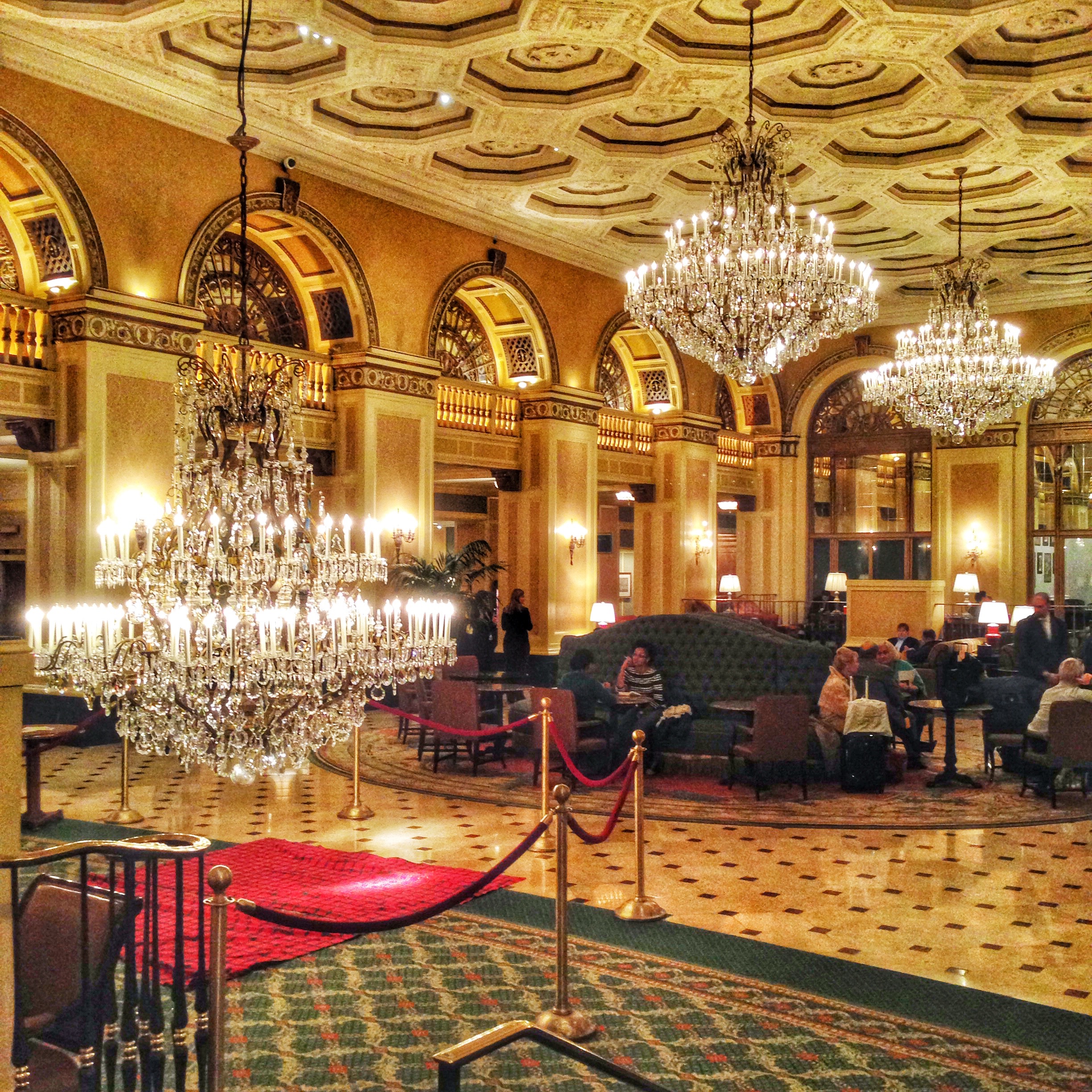After hopping aboard a Visit Pittsburgh media tour several years ago, I learned of the William Penn Hotel‘s Hollywood connection–and have been fascinated with it ever since. The luxurious 1916 hotel has been the Grand Dame of Pittsburgh for 100 years. Having just celebrated its centennial, I decided to write a few articles over the next few months featuring its architecture, high tea, and annual ritual cleaning of the chandeliers.