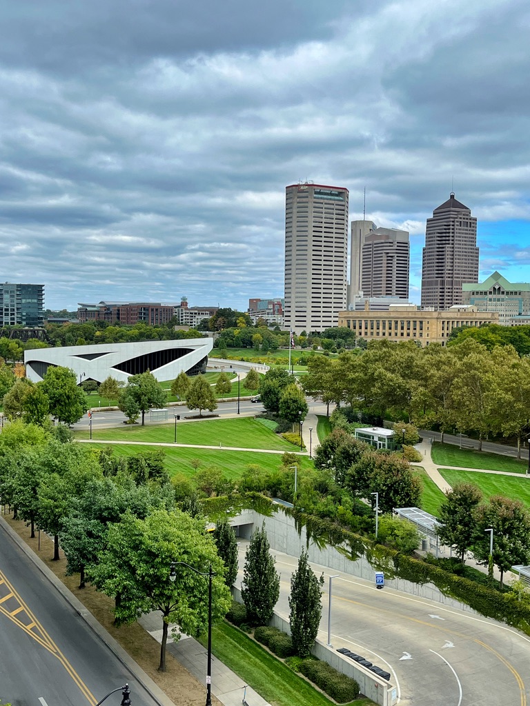Our first visit  to the Brass Eye rooftop bar at The Junto Hotel, was during an beautiful fall day post brunch, but a DJ was still playing nice jazz and the weather was perfect. The various indoor and outdoor spaces are warm and comfortable. Cheers to the Columbus skyline on a gorgeous fall day with my love. Pretty view of the city and over Franklinton.