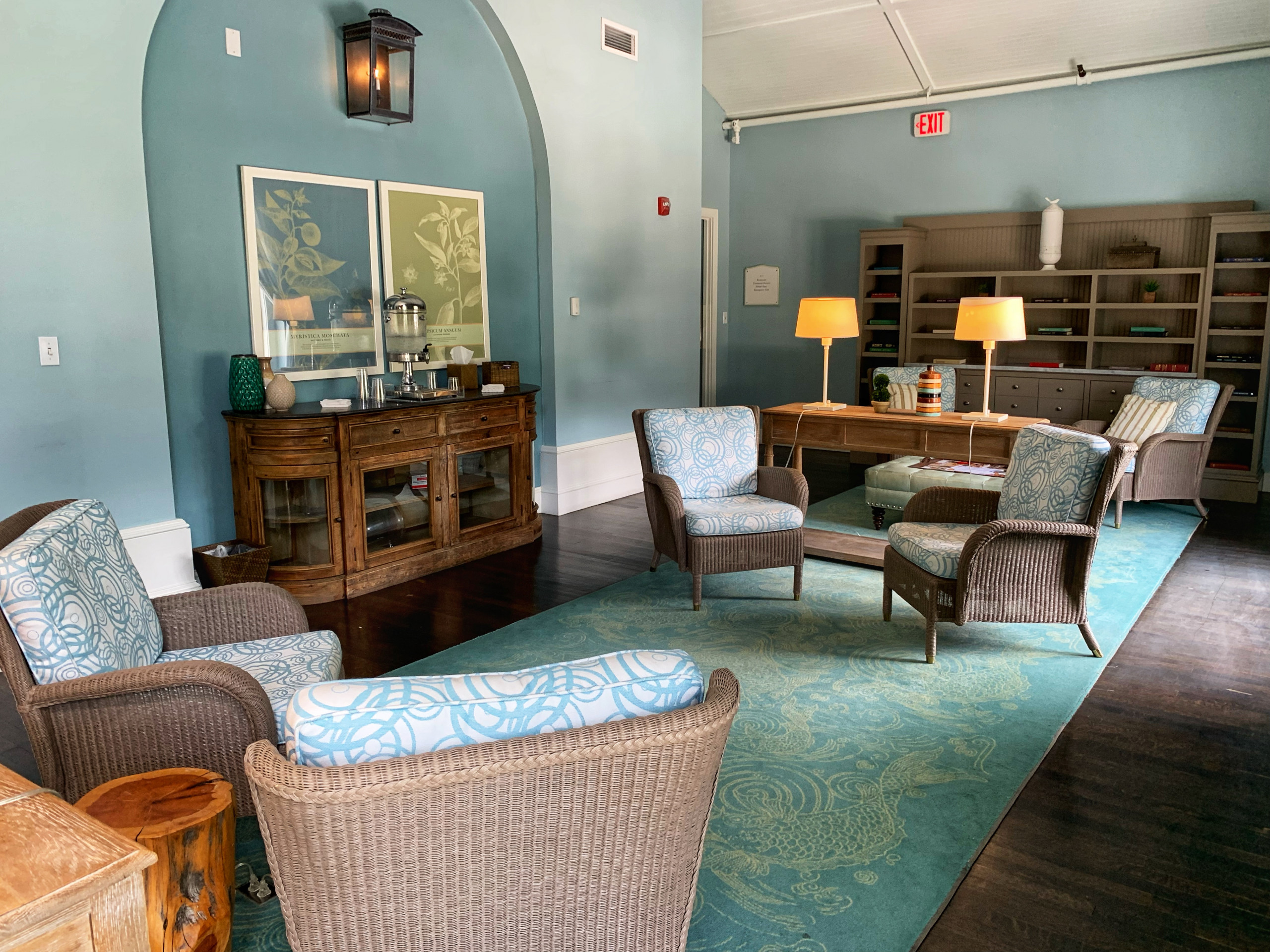 We spent a bit of time in the garden, soaking in the geothermal Octagon Pool fed by two hot springs rich in magnesium, potassium, and calcium and which remains at a steady temperature of 96-98° year round. Be very careful stepping in the pool as the natural stone stairs are quite slippery. Be sure to take a deluge shower in the tiled niche to rinse the silky mineral water off your body afterwards. At the center of the garden is the beautiful blue Infinity Pool heated to 85-92° and a hot tub maintained at 103°.  The Spa and Serenity Garden are available to guests 18 and older.