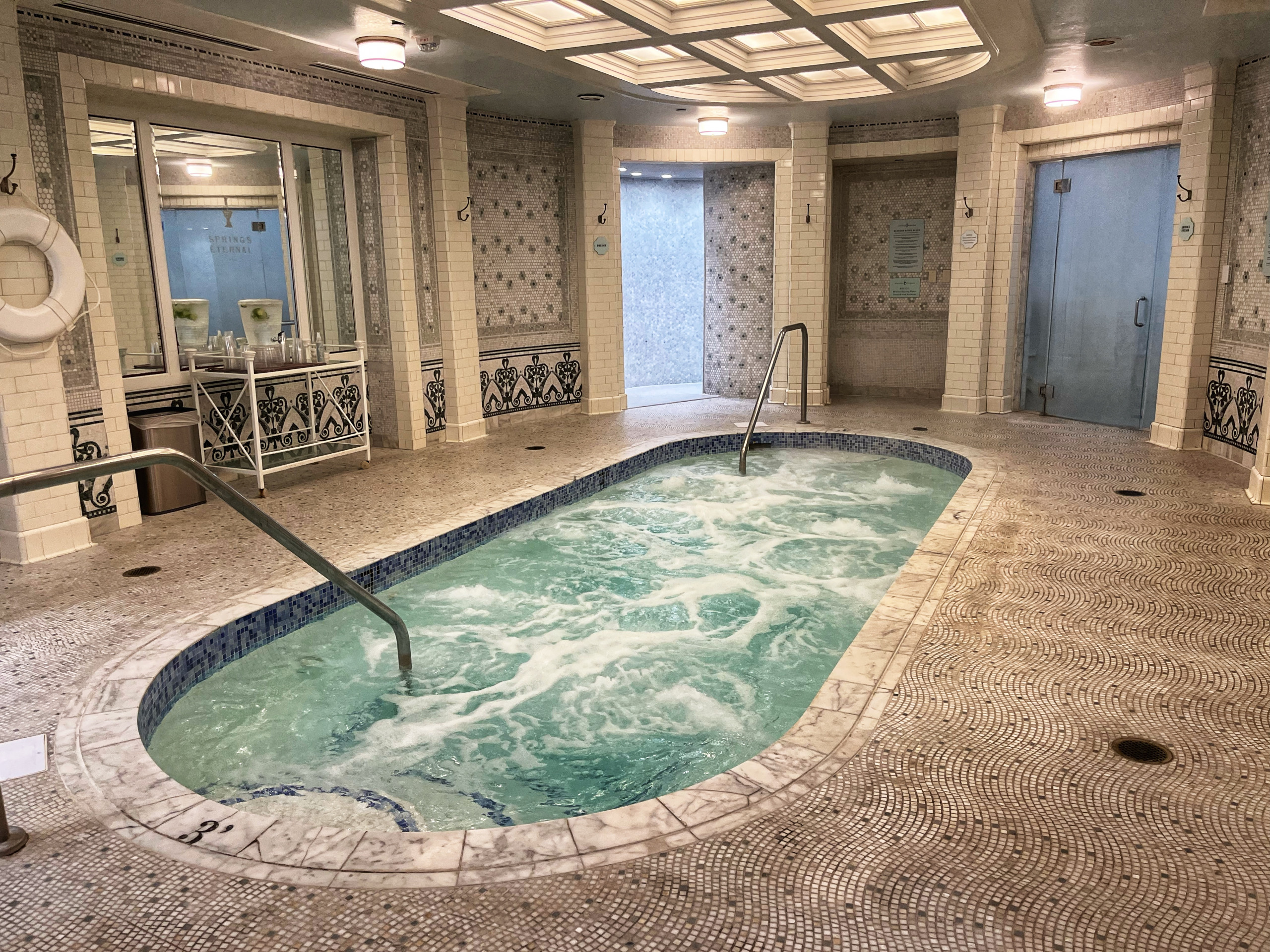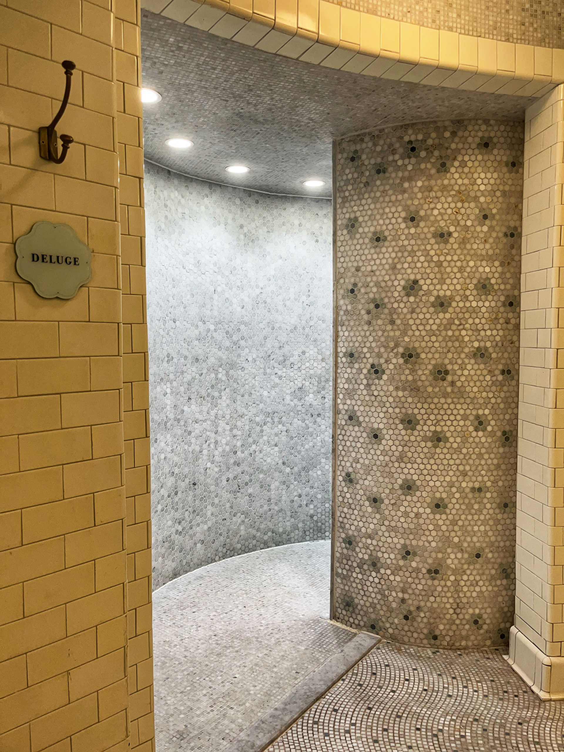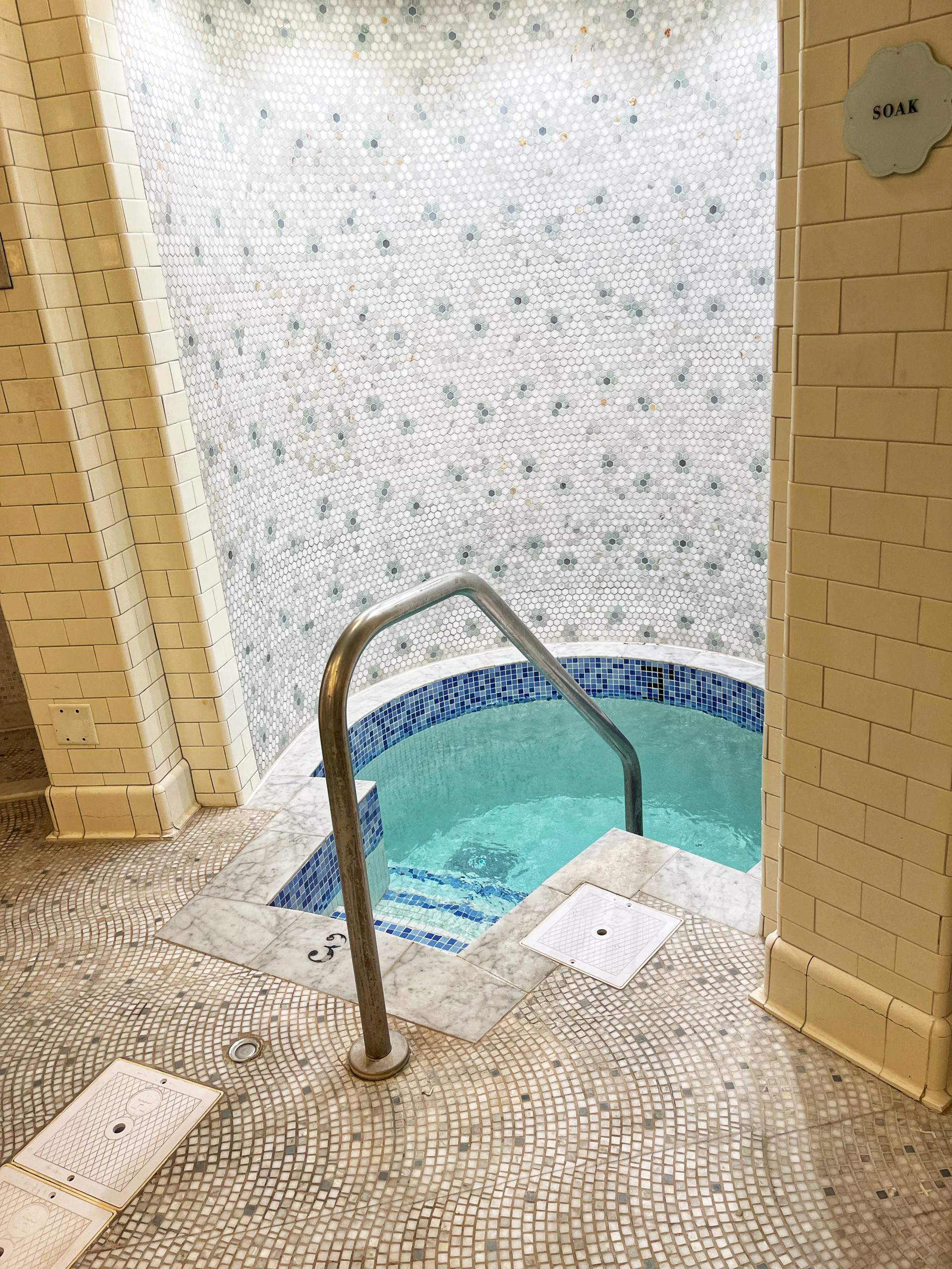 The process begins by exfoliating in the mineral deluge shower with alternating hot and cold sprays of water; then head into the steam room. I always take a towel in to sit on since the double decker seating area can be a bit warm. After sweating it out with a eucalyptus steam, take another deluge rinse without exfoliating. The list hanging in the spa suggests times for each part of the ritual, but I like to alternate between hot and cold baths a few times. The hot mineral bubble pool is a very warm hot tub while the cool mineral pool soak can only accommodate one person at a time, so it feels like hanging out in a wine chiller. At the end, hydrate with refreshing cucumber aroma mist and cold cucumber water. This is when the lounge is calling.
