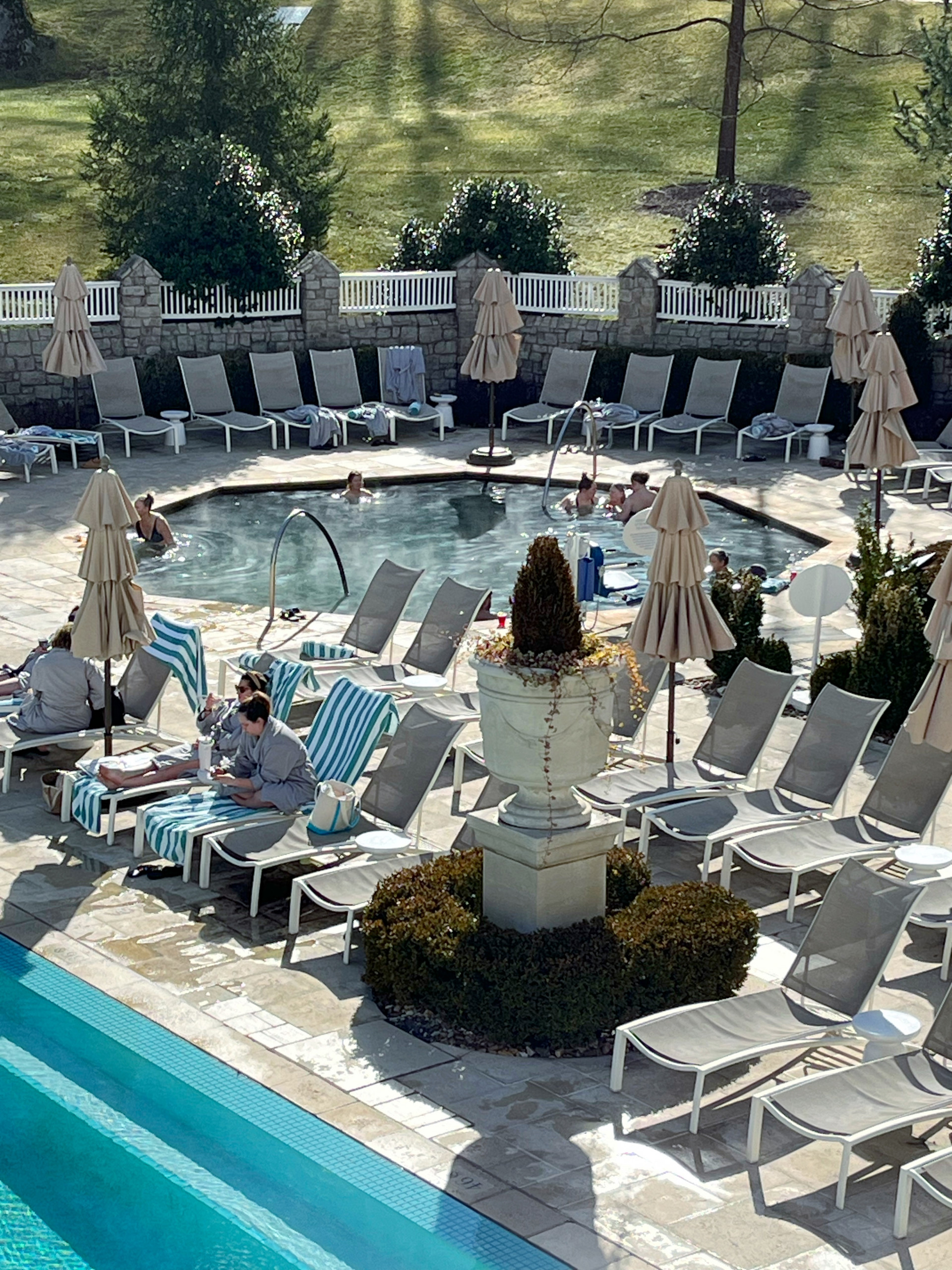 The spa is particularly lovely in the winter as thermal steam rises from the folds of the hillside and firepits blaze. Snowflakes gently fell in the morning, but gave way to bright sunshine and fifty degrees, so we lounged outdoors in the luxurious thermal water pools and hot tub. The couples massage at the spa was an an exceptional experience. The adult-only spa is a peaceful retreat and has become one of my favorite winter sanctuaries.